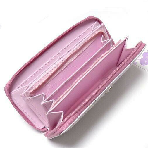 ■素材: 合成皮革 ■サイズ:幅195mmx高さ95mmx厚み25m ■カラー:ホワイト ■仕様 札入れx2層・カードx12・ファスナー小銭入れx1層・ポケットx2白猫ちゃん達と全面にハートとリボンで散りばめたお財布♪