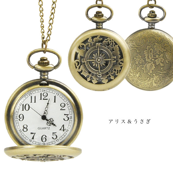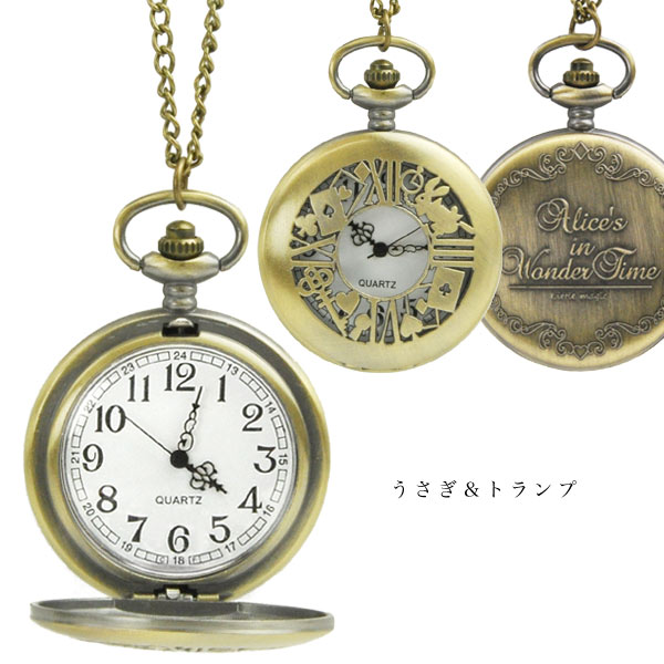懐中時計 不思議の国のアリス グッズ ポケットウォッチ アンティーク ネックレス チェーン 時計 ラッパうさぎ かわいい 懐中時計【送料無料】