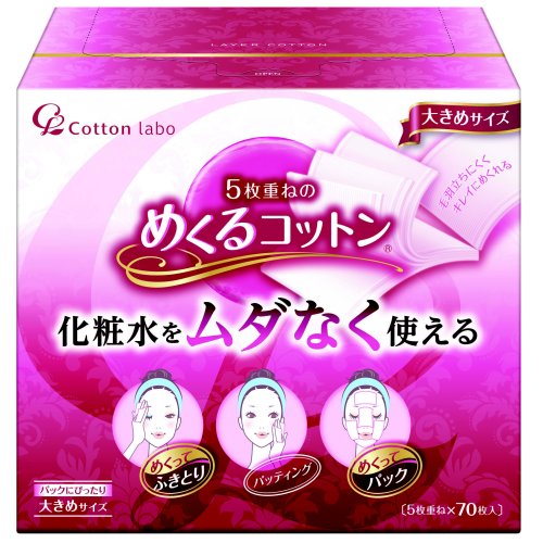 コットンラボ 5枚重ねのめくるコットン 大きめサイズ 70枚入